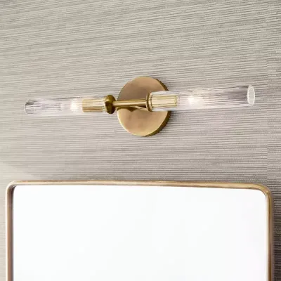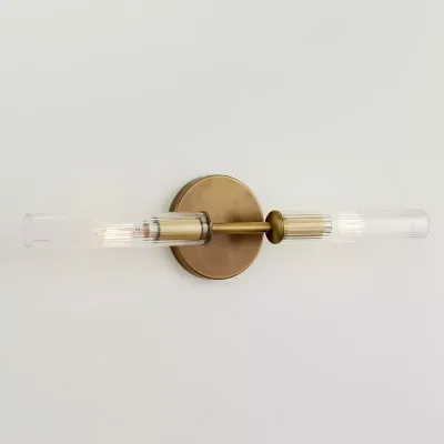 Alice Rustic Transparent Cooper Ribbed Glass Double Tube Sconce